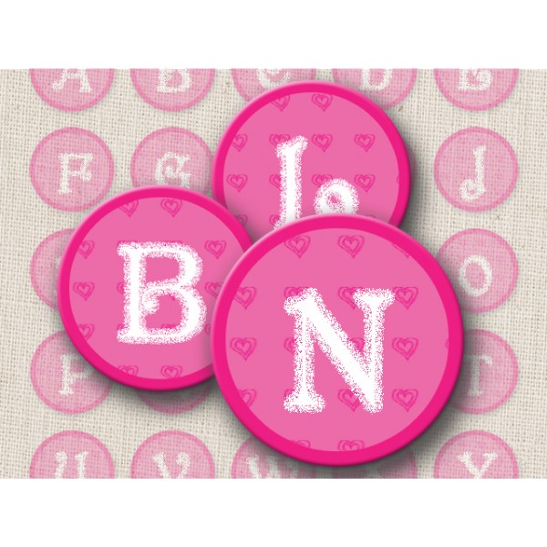 Pink Alphabet Circles Digital Round Images 1 Inch 2.54 cm Collage Sheet Printable