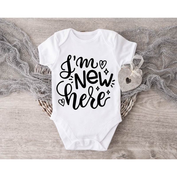 Tags:Baby Onesie I am New Here, Baby Onesies, Custom Baby Onesie